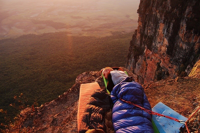 W końcu jesteśmy! Poszatkowani przez moskity, brudni i wymęczeni, ale dopięliśmy swego! Po dziesięciu dniach (w tym dni restowe) pracy nad nową linią z pociętymi paluchami stanęliśmy w końcu na najwyższym wierzchołku Acopan Tepui. Długo debatowaliśmy nad nazwą naszej drogi. Wydaje mi się, że „Mystery” pasuje do niej idealnie. Mówi o tajemnicy dżungli, Indian oraz wszelkich zjawisk przyrodniczych, których doświadczyliśmy w ścianie. Trudności drogi oceniliśmy na 7c max, 7b oblig., a jej długość na 18 wyciągów (650 m skały + 150 m łatwego terenu). Droga w większości została ubezpieczona w stałe stanowiska oraz kotwy na wymagających wyciągach. Techniczne krawądkowe wspinanie w płytach przedzielone masywnymi, siłowymi okapami pokazały mi, jak bardzo realny może być sen wspinacza. Rejon Tepui to prawdziwy wspinaczkowy raj nad dżunglą, skrzeczącymi papugami i wydzierającymi się w niej wniebogłosy małpami.